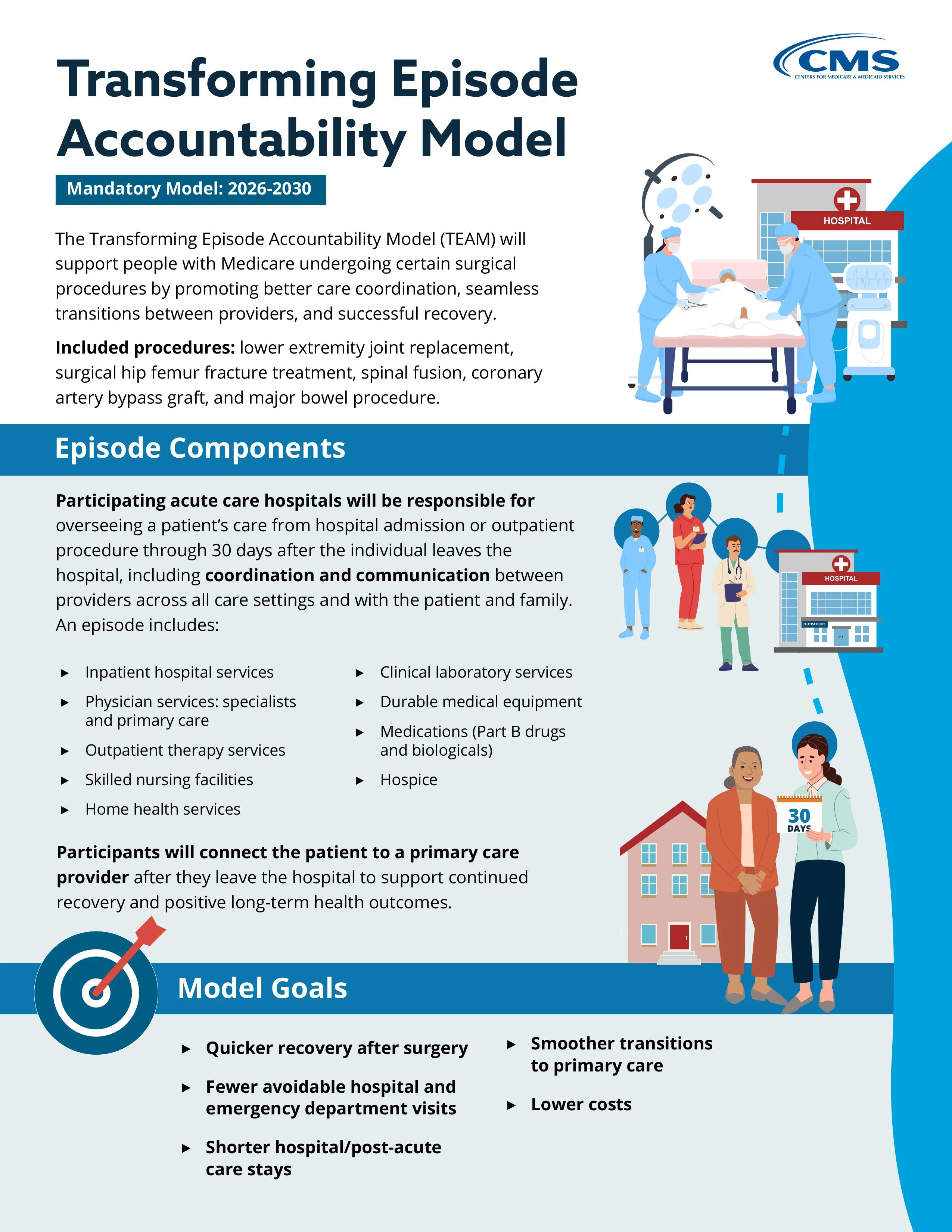 The TEAM Model marks a turning point in CMS innovation. Hospitals will be held accountable not just for what happens in the operating room, but for everything that follows—home health, skilled nursing, rehab, readmissions, and even how patients say they’re feeling.